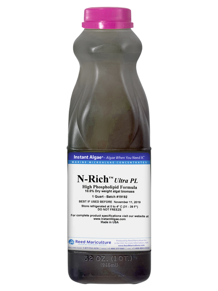 N-Rich® Ultra PL | Very high HUFA enrichment | 9% | Refrigerated | 4 Months | 1 quart bottles & 10 liter bags |